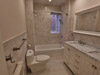 Large bathroom with double vanity sinks, Carrera marble vanity-top. Bathtub